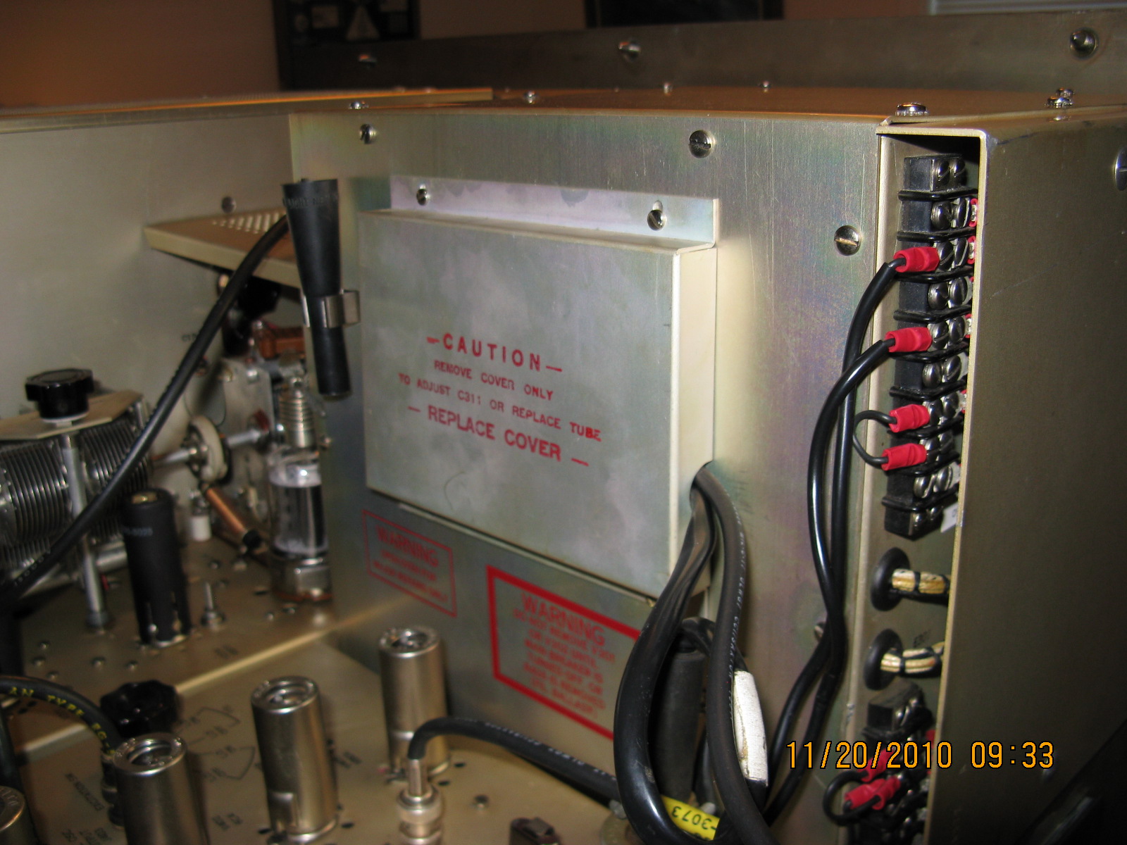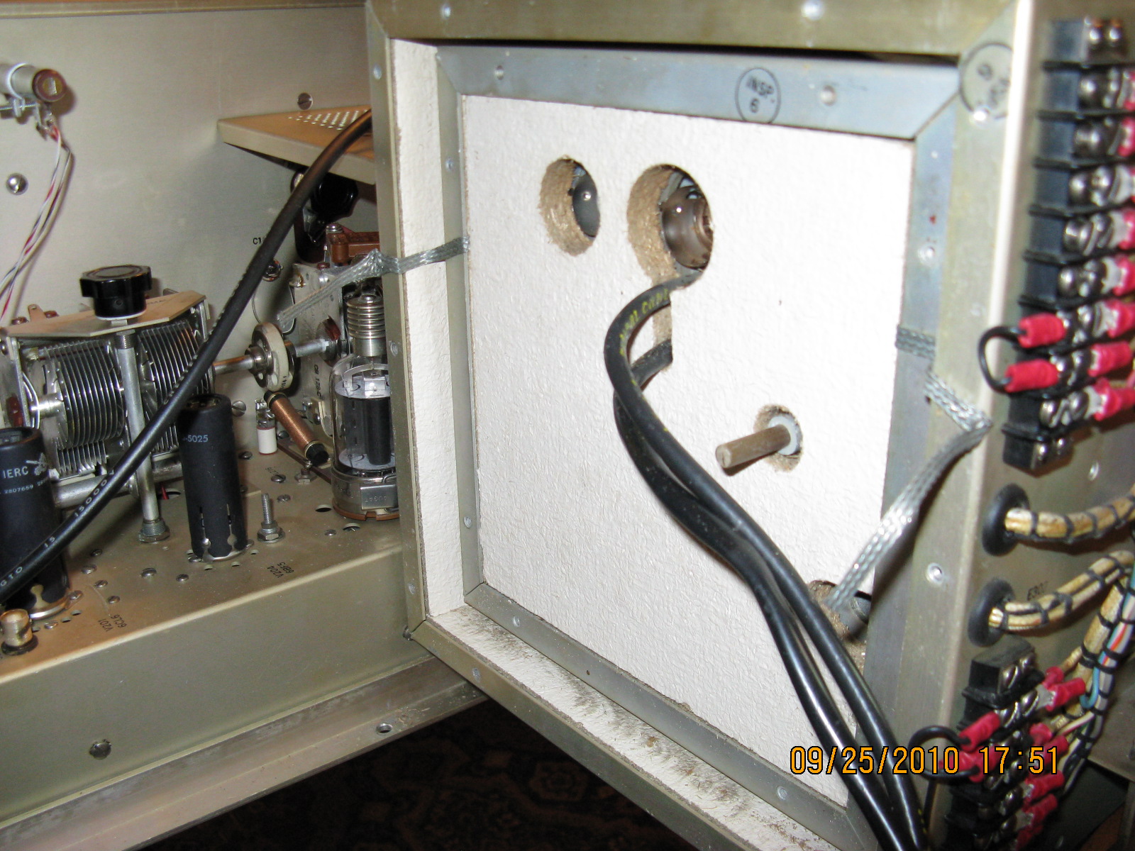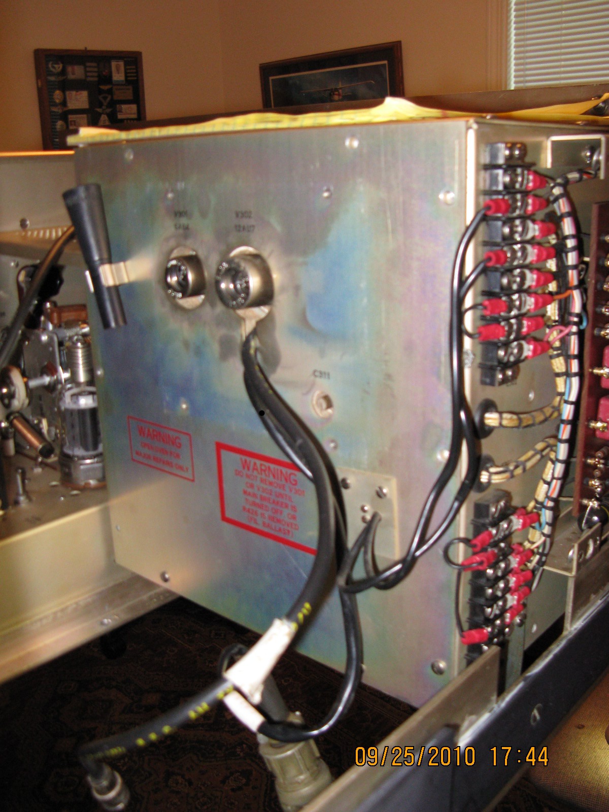 At this point, using the Capacitor Bridge, ensure that fixed capacitors C- 304, C-305, C-306, and C-319 are all within the 5% tolerance range.  Be sure that there isn’t any corrosion on the base pins of the tubes V301 and V302. With a flashlight ensure that the corresponding tube sockets are free of corrosion or clean or replace, if necessary. Check that the two RG-58 coax cables are supple and in good condition, or replace.