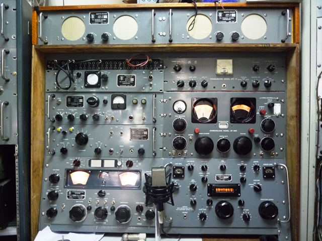 | This is Nick's SBT-1K back when it was still under restoration. It is regularly in service these days on both AM and SSB. It has been joined by the bits and pieces of an SBG-1 synthesized exciter, but that's going to be a major project to get going! To the right of the SBT-1K is Nick's URT-3, a thing of amazement and beauty, also now working. |