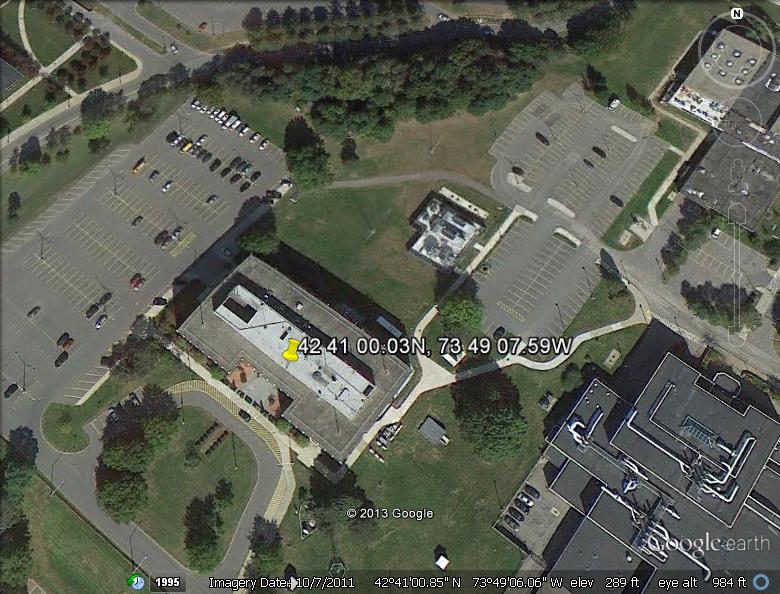 Present-day State Emergency Management Offices are located as shown in the map above, a main office at Albany, and regional offices for each of the five Management Districts. As mentioned, two of these sites (Newark and Poughkeepsie) were in the original plan. Examination of satellite views of the Queensbury/Glen Falls site indicates that it includes a bunker and antennas installed in the 60's. Rumors circulated about a site at SUNY Oneonta in southern Ostego County, and this has been confirmed by Duncan Brown (AWA Museum), and Christopher Romanchek (KD2PFE), who has researched the site extensively. There is some evidence that the Oneonta site could be used as a backup for the Headquarters site at Albany, in case the bad thing happened.