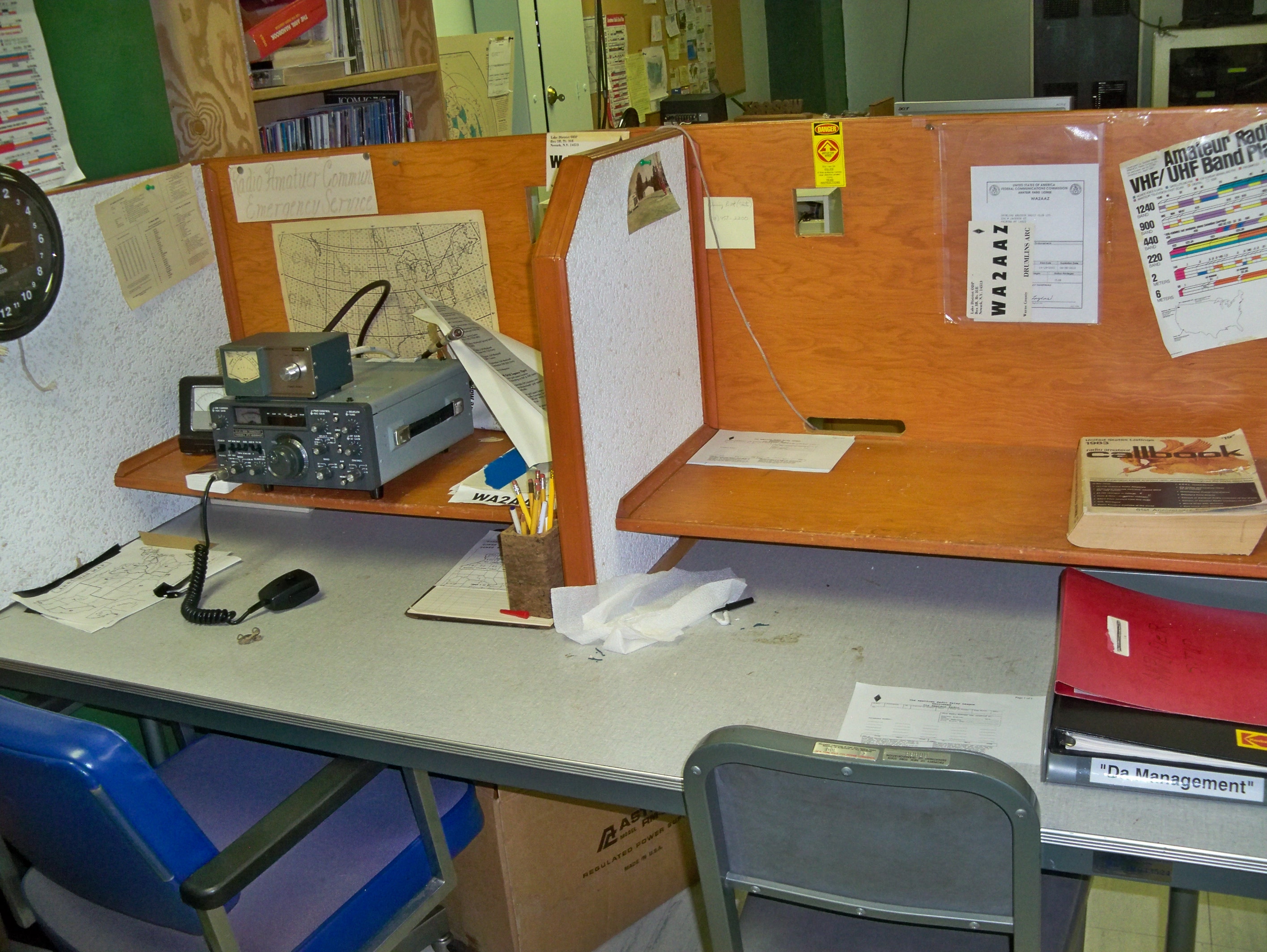 At about the same time a group (including a present AWA museum curator) was starting up an amateur radio club in the Newark area, and they were able to get some space in the Newark SEMO facility for locating ARES/RACES equipment, and to hold meetings. The site was apparently built with ARES/RACES in mind, as at the top of the 200' tower is a 4 boom 2M Yagi array. And about half way up the tower there is a 5 el 6M Yagi antenna. Amateur and AWA presence in the Newark bunker led to the donation to the AWA Museum of the TMC HF communications equipment.