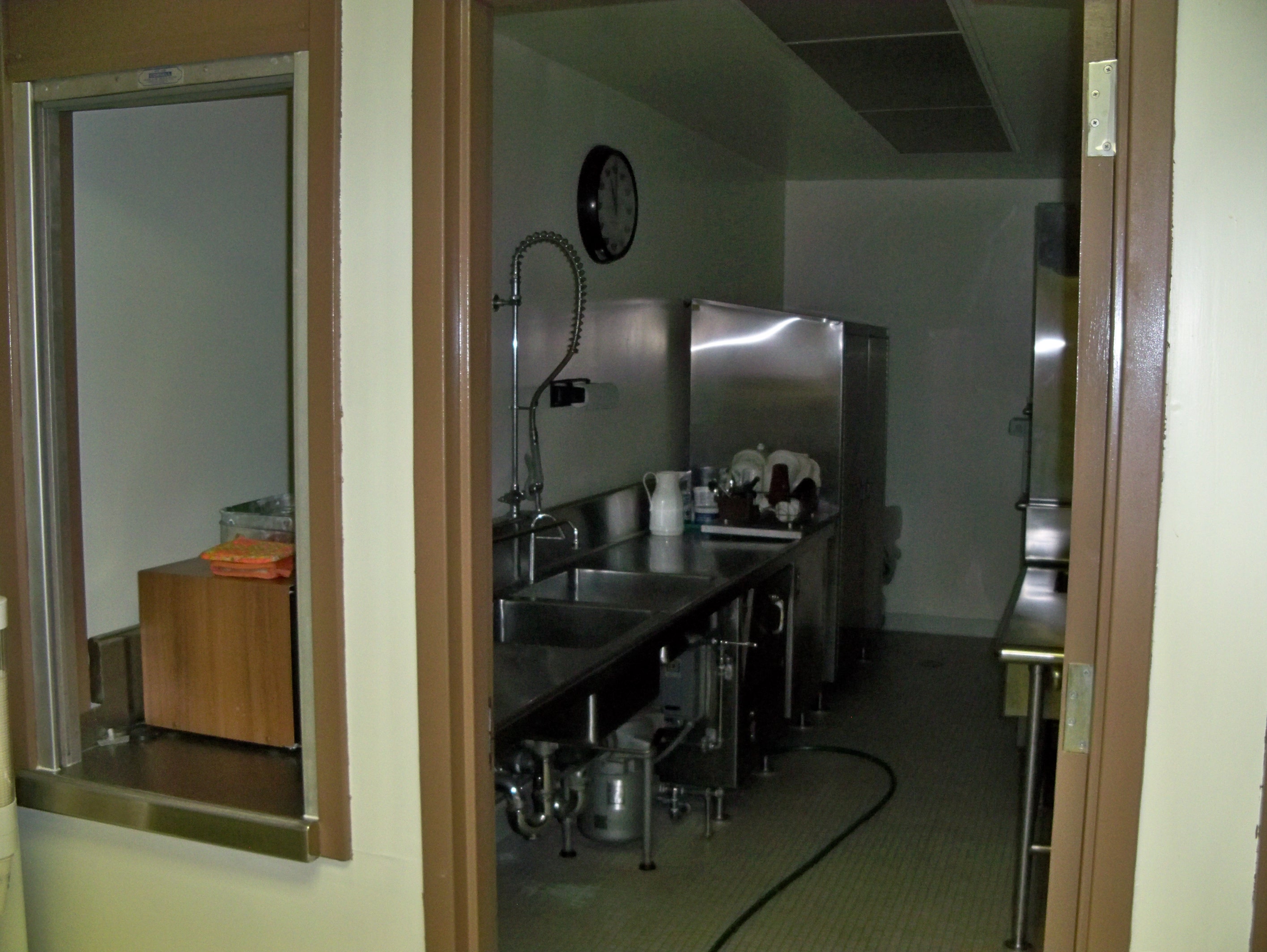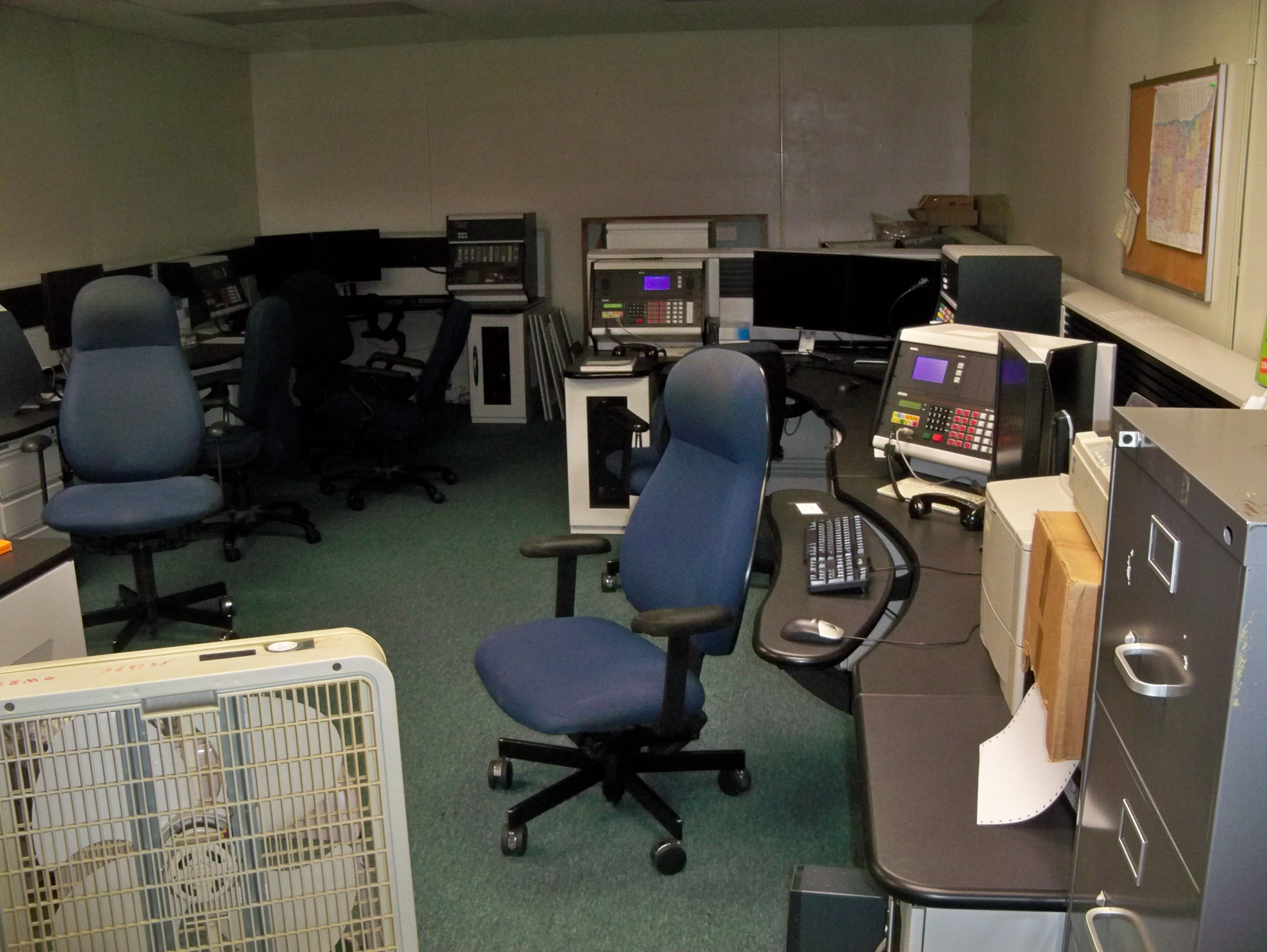 The Stairwell lies directly below the small red-brick entrance building, shown in the photos above. Duncan noted that the Operations Room has 32 desks, all with phones and four with GE Radio remote controls. Desks have signs, such as: En Con, Soc. Serv., Sal. Army, Guard, St. Pol., FBI, CAP, Fire, AG/Mkts, Labor, DOT, USDA.