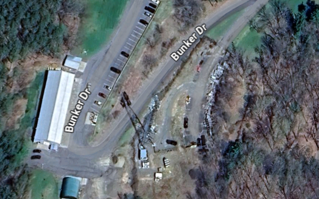 Thanks to Duncan Brown for cleverly locating the Oneida site via its FCC callsign info! The antenna mast is visible via its shadow, and the bunker entrance is likely close to the google maps marker. |