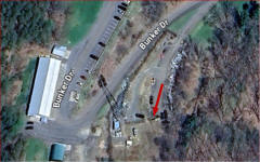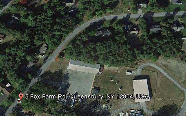 The Queensbury (Glen Falls) site is evidently still in use, and it's pretty easy to see the entrance to the bunker, just at the SE edge of the parking lot left of center of the photo. The tower is not easy to see in this photo (it's easier to spot in the Google Maps image), but you can see its shadow. |