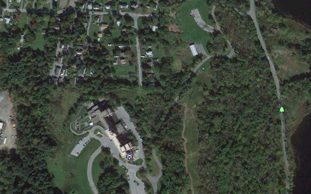 The Oneonta site is impossible to see in this satellite view but it is just to the right of the cell tower at the center of the image. See discussion below. |