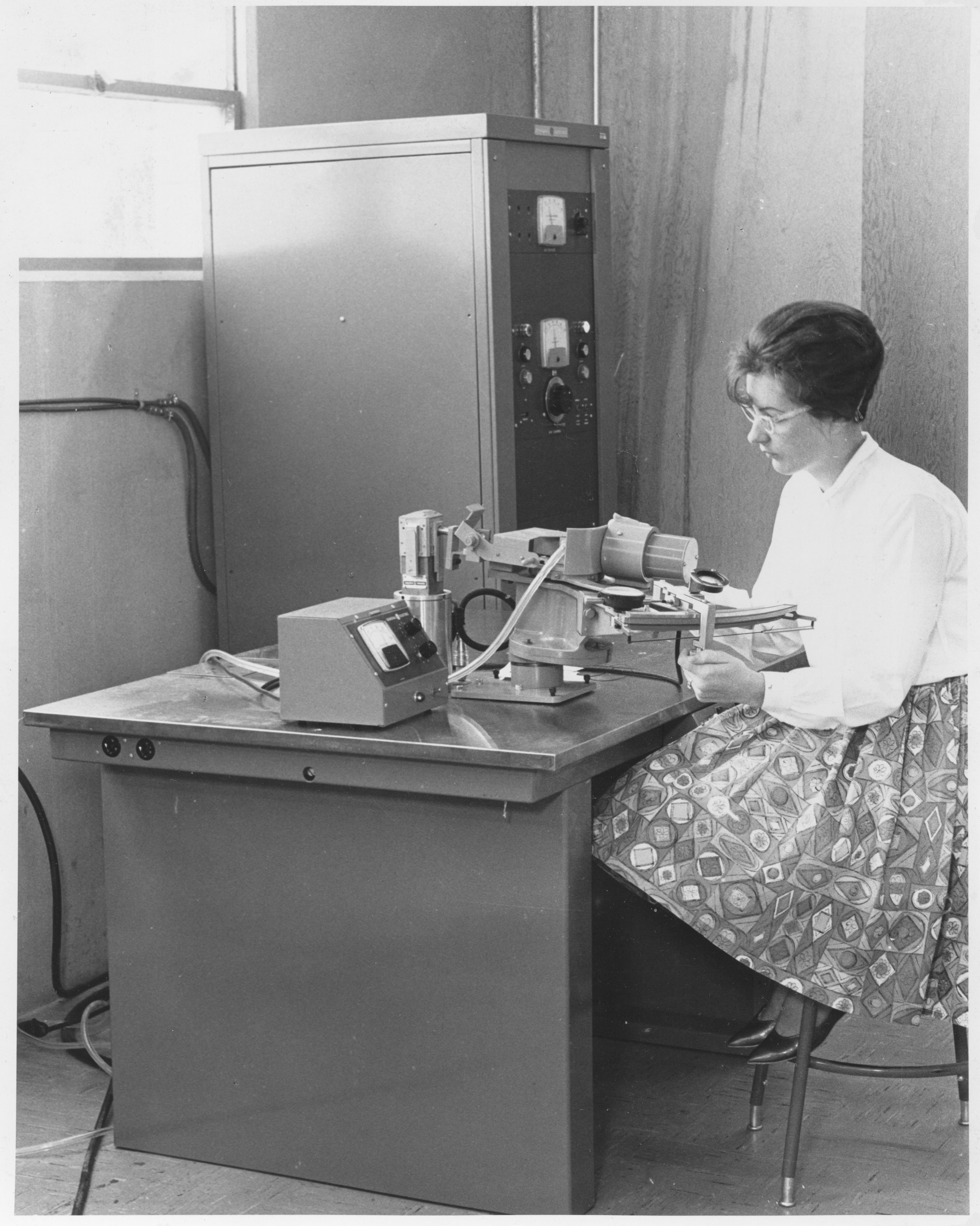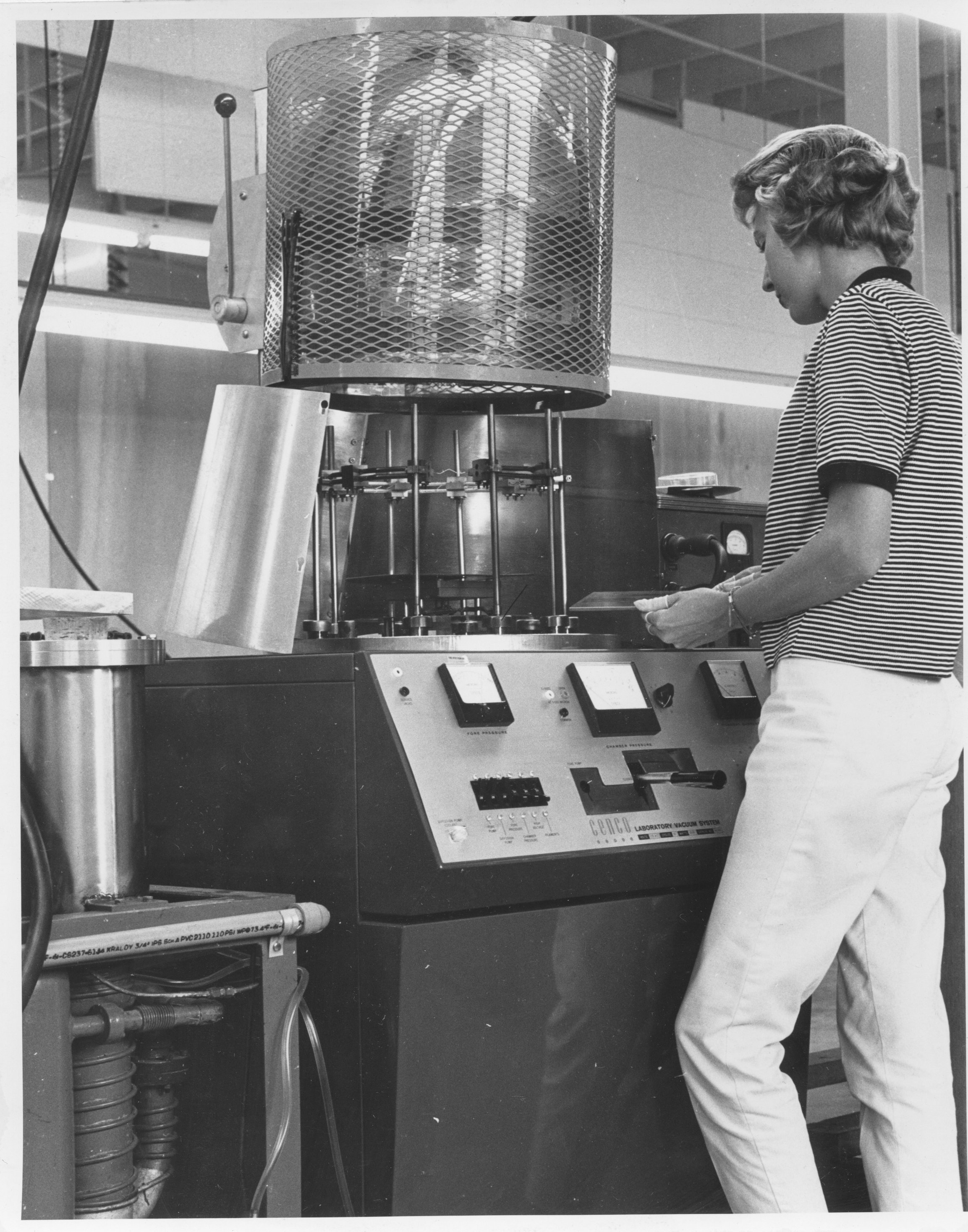 The following photos appear to be documenting the various steps in crystal manufacturing. All of the photos were taken by Adrian Clark Jr. Photo. There are no dates on any of the photos. Any help in identifying the various steps in xtal manufacture, or any of the people in the photos, would be greatly appreciated! As would a confirmation that these photos were taken at the TMC Arizona plant.
