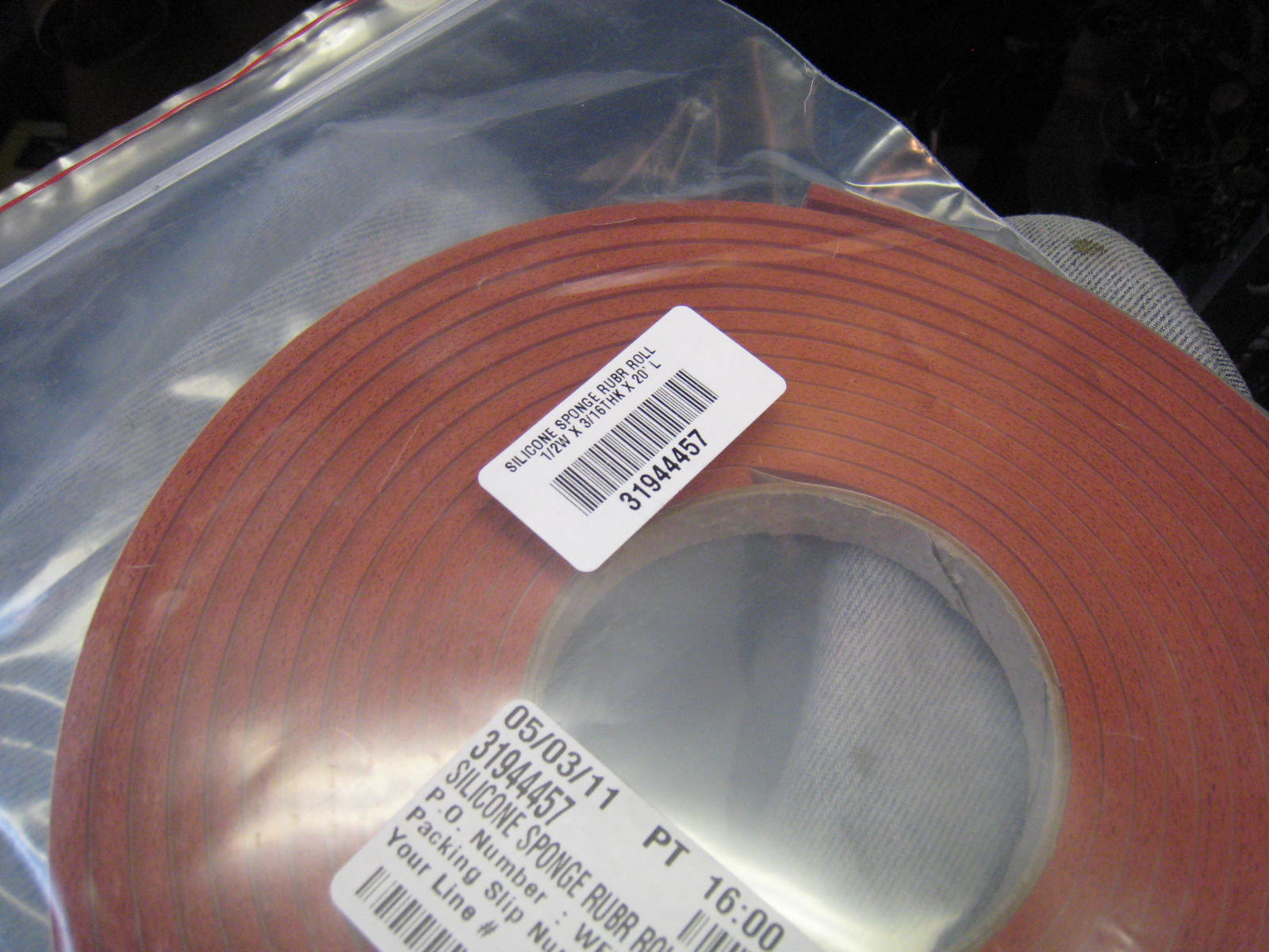 As shown above, the black foam that TMC installed 50 years ago has probably failed. I replaced the foam strips with some silicone sponge rubber with adhesive backing (see above). I couldn't find the right width, so just used scissors to cut it to width and length. Below, see pix of installed foam and bottom plate in place.