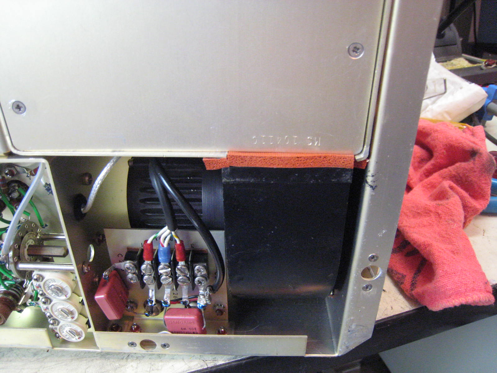 I installed a small phenolic terminal post on an existing screw/nut and ran a green wire over underneath the output connector to the terminal of choke L101 that connects to the cathodes of CR101/102 (via a green wire from the harness). The other side of the capacitor is returned directly to T101's center tap terminal.