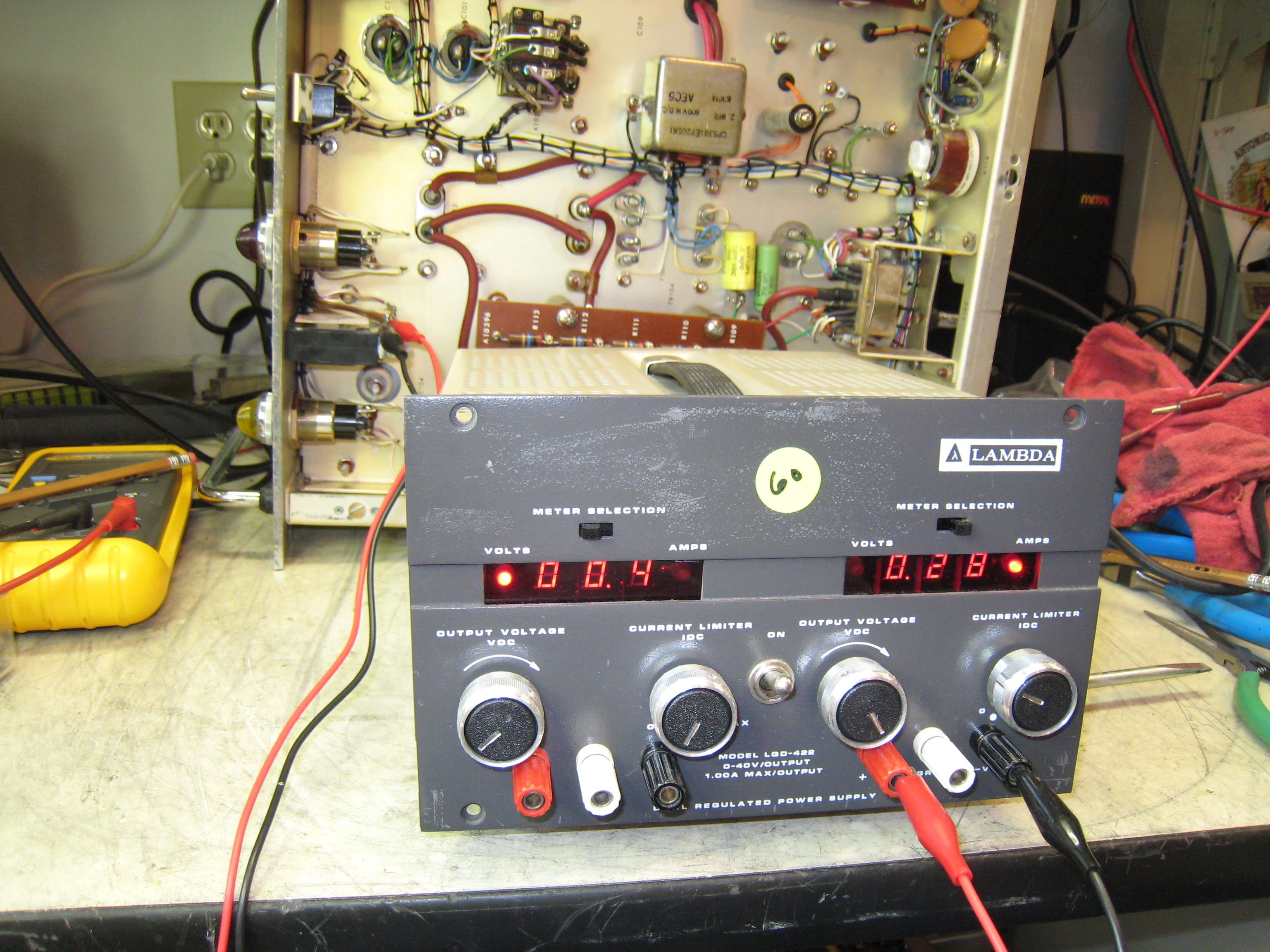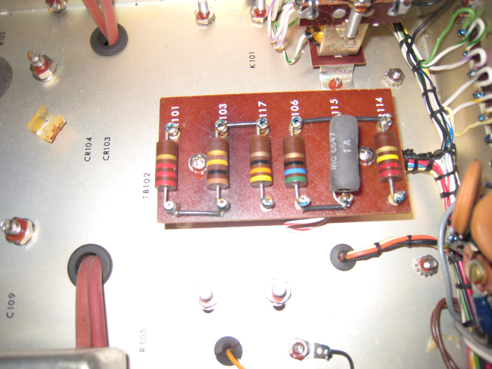 ..rebuilt by a previous user, and not very well. I ended up inspecting and measuring all of the carbon comps on the boards in all three supplies and replacing several of them. I'm a bit of a nut on originality (where possible), so I used NOS Allen-Bradley units that I've gathered at hamfests over the years. I've gotten to be a bit of a snob about these things, and will only buy NOS parts, not ones from junk drawers. I always measure these resistors before using them, but have found that NOS Allen-Bradley's, preferably obtained in their original plastic wrap, are usually well within tolerance. You could, of course, use more modern parts, such as carbon film resistors.