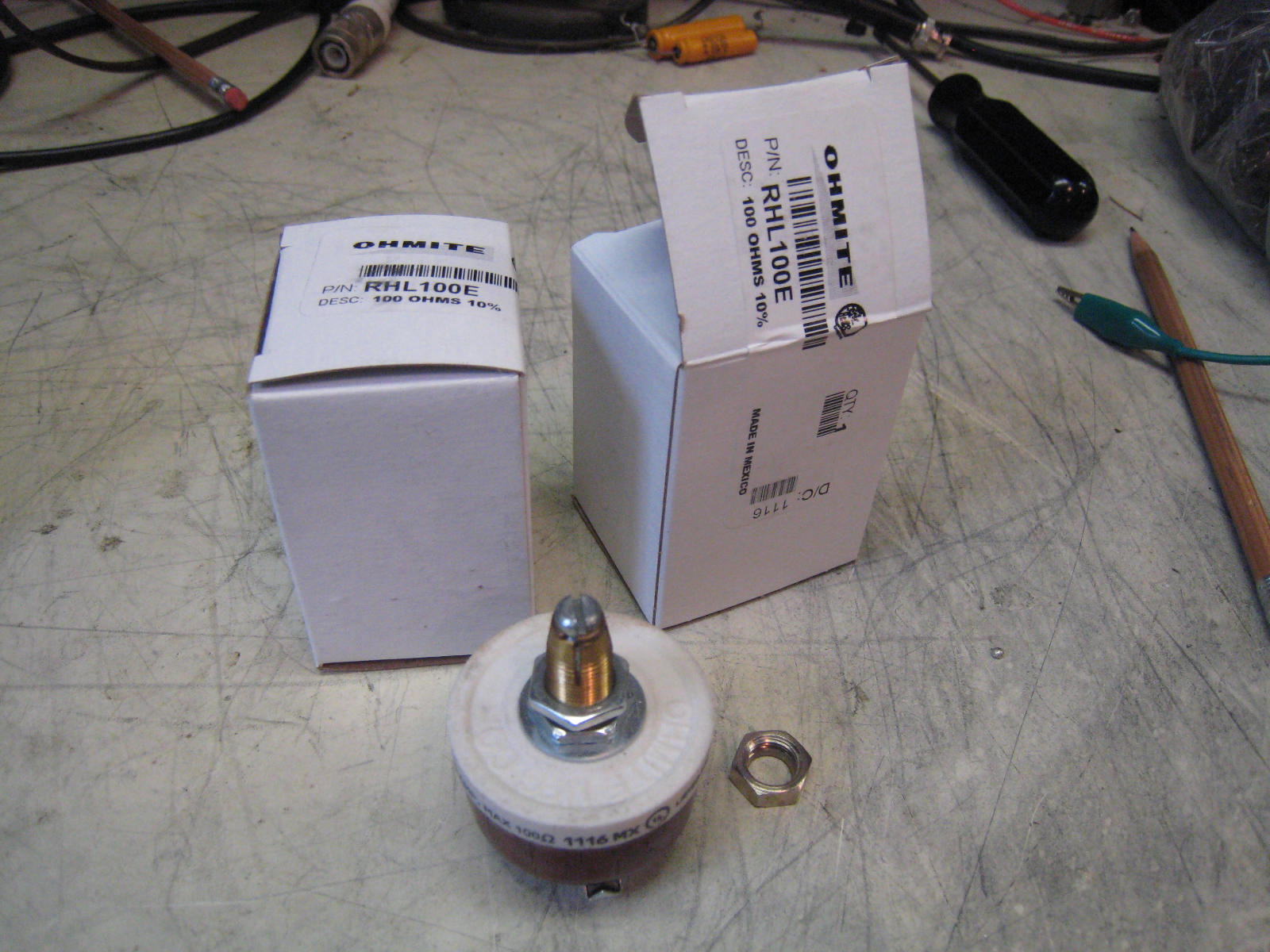 On one of the power supplies, the overload adjustment potentiometer R116, a 100 ohm 25W unit, was completely rust frozen. It's possible I could have re-habilitated this pot, but I decided to look for a replacement. It turns out these parts are still available, newly manufactured by Ohmite (P/N RHL100E, though sadly manufactured in Mexico), and I ordered mine from an online vendor OnlineComponents.com, where it was in stock, and in my hands within a couple of days. I have an extra one on hand, if you need it!