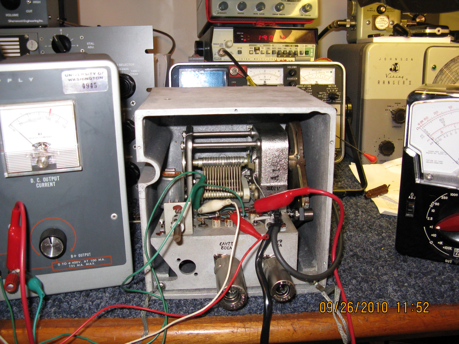 Figure 9: Testing the master oscillator, inside of cast aluminum case.